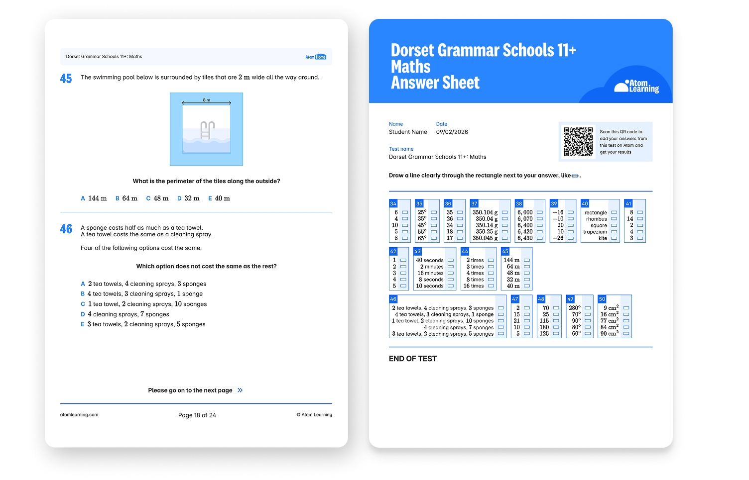 Atom’s 11+ practice papers are exact replicas of real 11+ exams. They’re also unlimited – you can download the same paper again and again, and your child will get new questions each time. This helps them practise without repeating the same content.