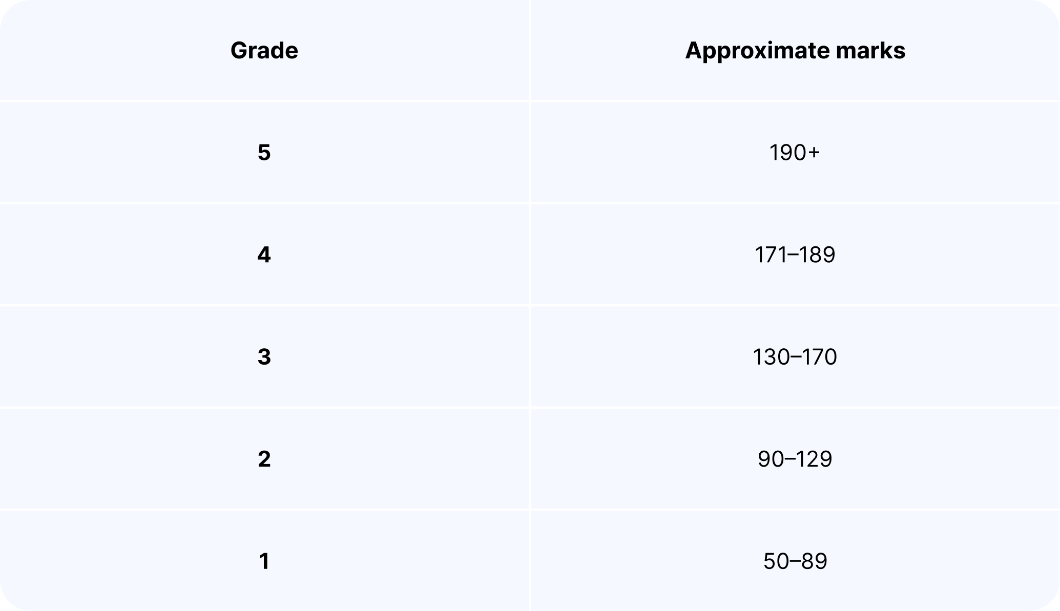 Higher-tier success comes from precision, range, and well-developed responses.