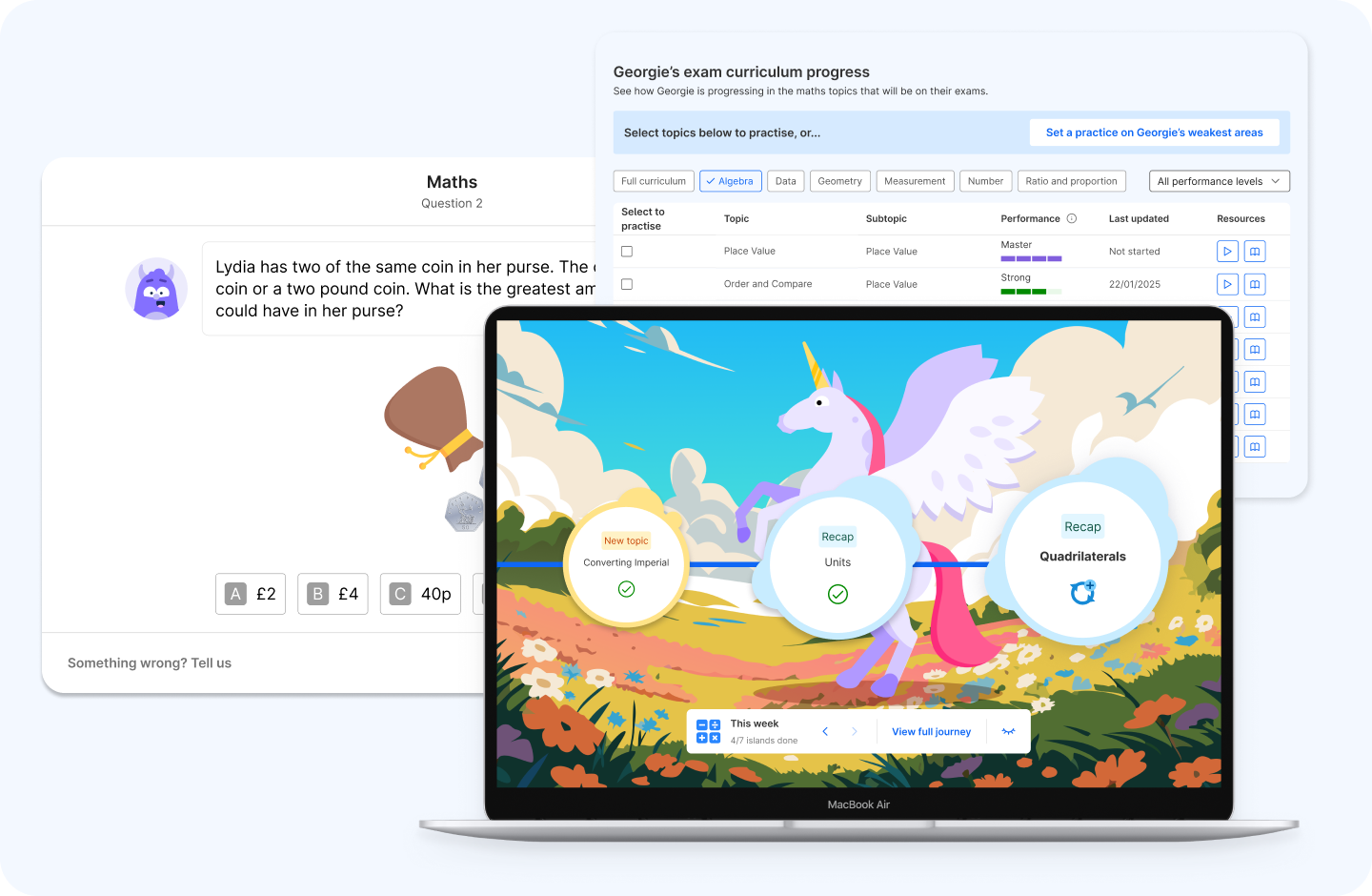 Each island focuses on a specific concept, so progress is built topic by topic rather than subject by subject. As a parent, you can see exactly which islands your child has completed, giving you a much clearer picture than a general sense of how they're getting on. Rather than a vague feeling that maths is going well or could do with more attention, you can see precisely which concepts have clicked and which ones just need a little more time.