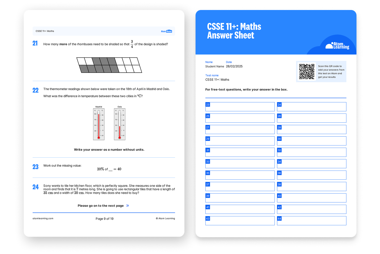Atom's 11+ practice papers are exact replicas of real 11+ exams. They're also unlimited — you can download the same paper again and again, and your child will get new questions each time. This helps them practise without repeating the same content.
