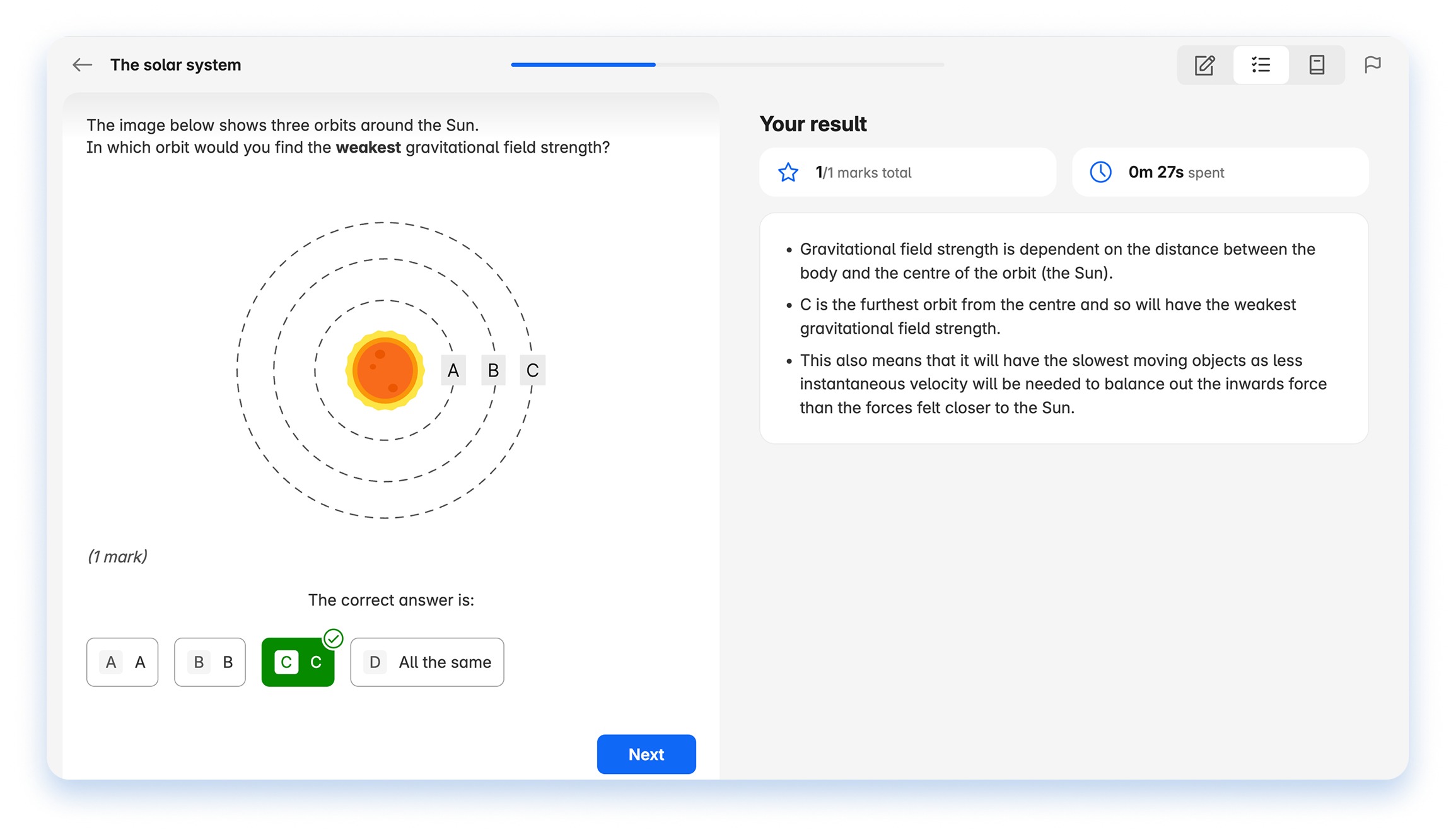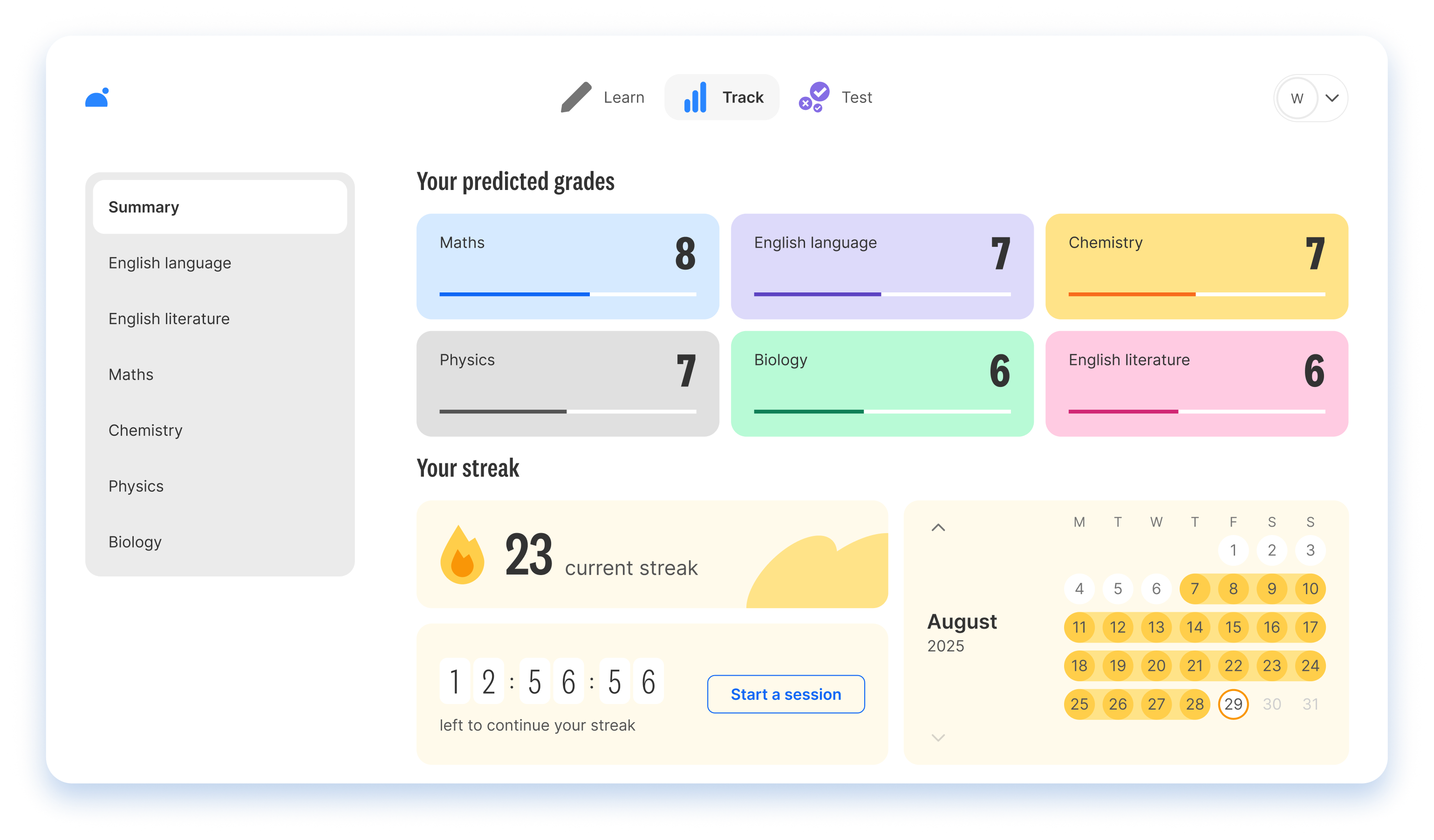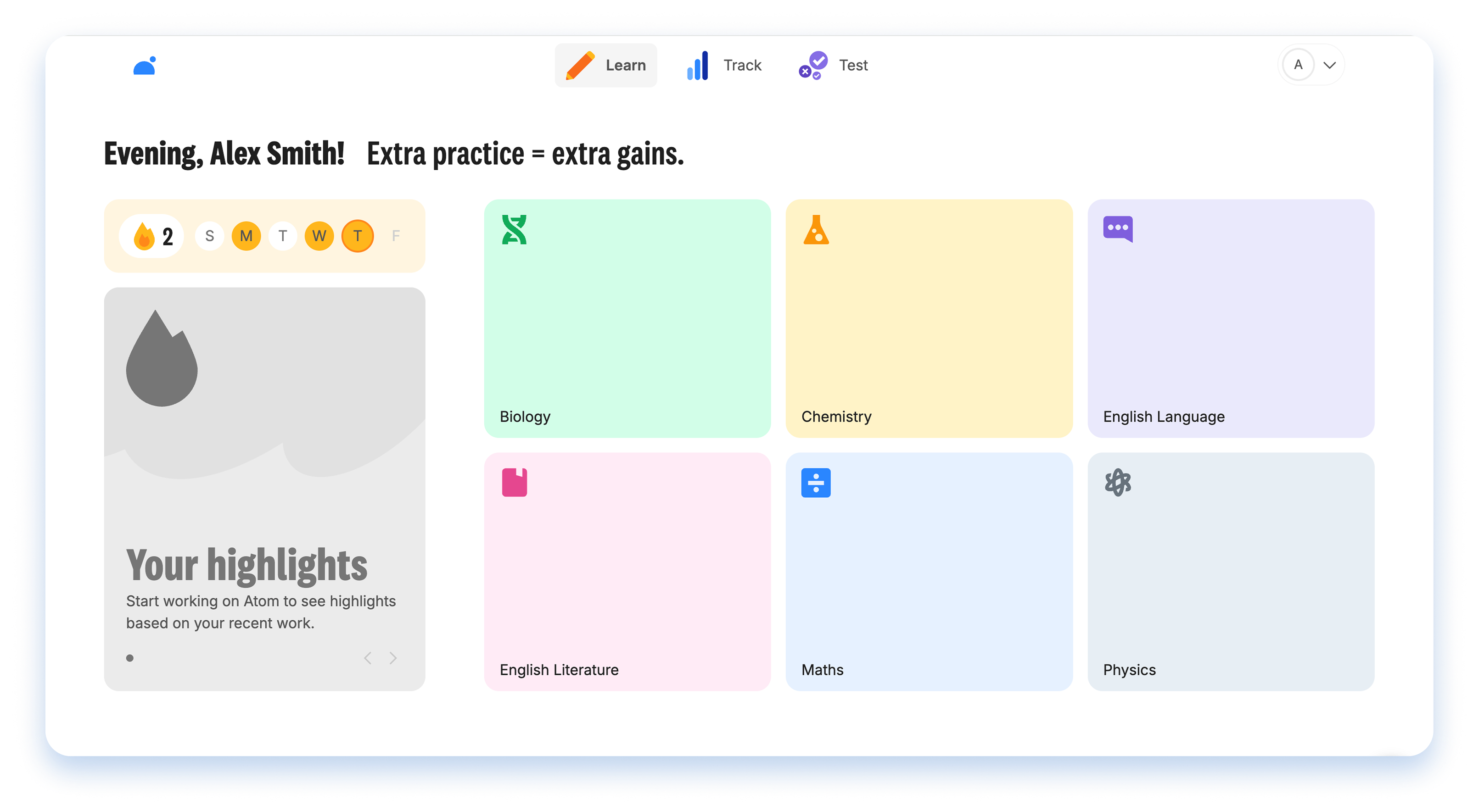 Regular short sessions on Atom are more effective than occasional cramming. Even 10–15 minutes on a GCSE Physics topic builds knowledge and confidence over time — and a full predicted paper at weekends helps students track their progress.